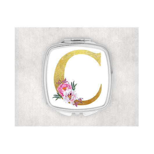 Gold Inital Square compact mirror. - whitworthprints